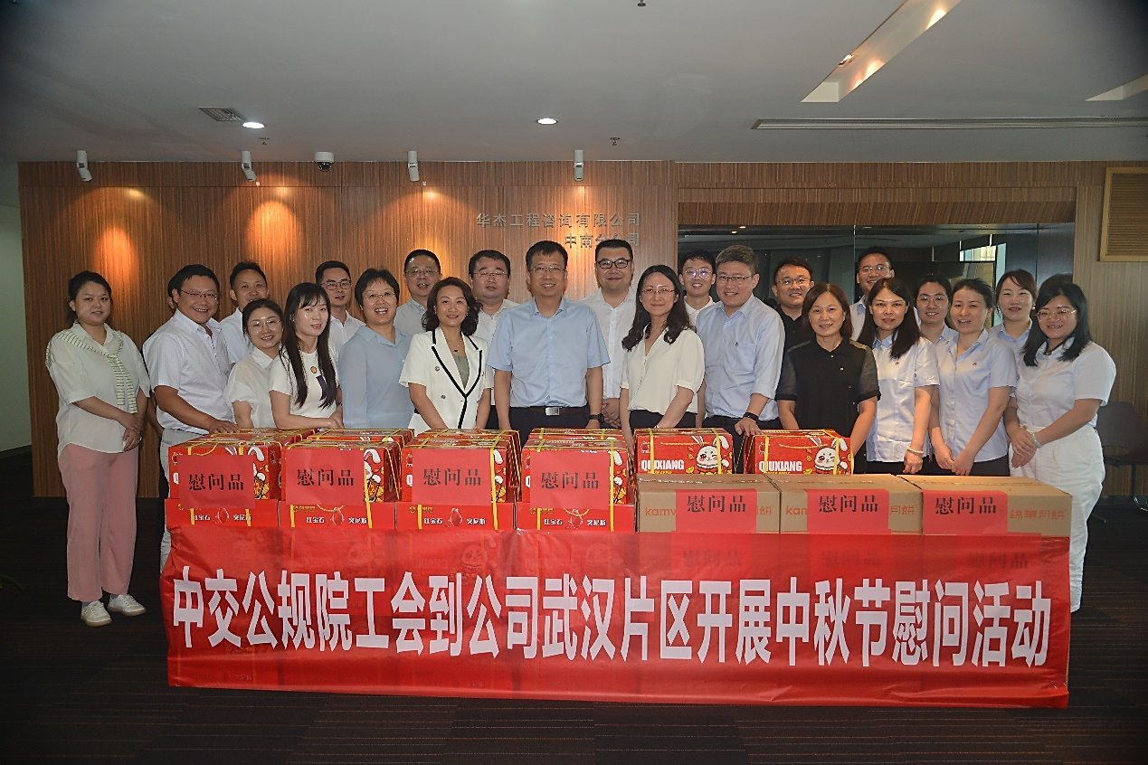 9月19日下午,公規(guī)院工會組織開展武漢片區(qū)中秋慰問活動,院黨委副書記、紀委書記、工會主席孫勇一行蒞臨華杰中南分公司慰問調(diào)研,為一線職工送來溫暖關(guān)懷和節(jié)日祝福。華杰公司黨委書記、總經(jīng)理田豐,工會主席陳克麗參加活動。