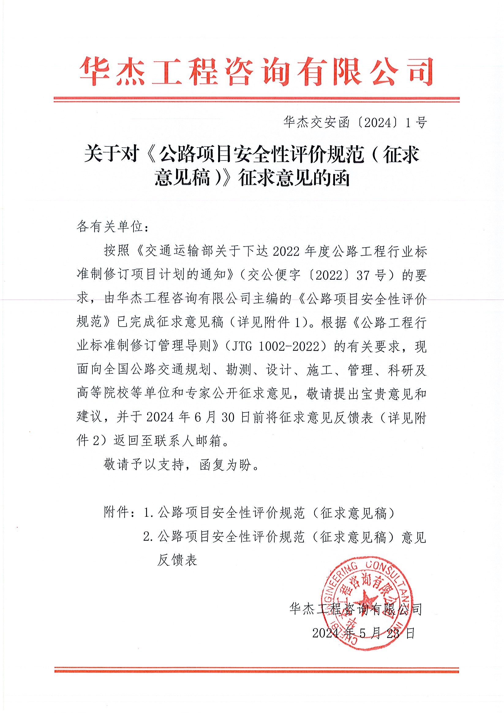 關(guān)于對(duì)《公路項(xiàng)目安全性評(píng)價(jià)規(guī)范(征求意見稿)》征求意見的函